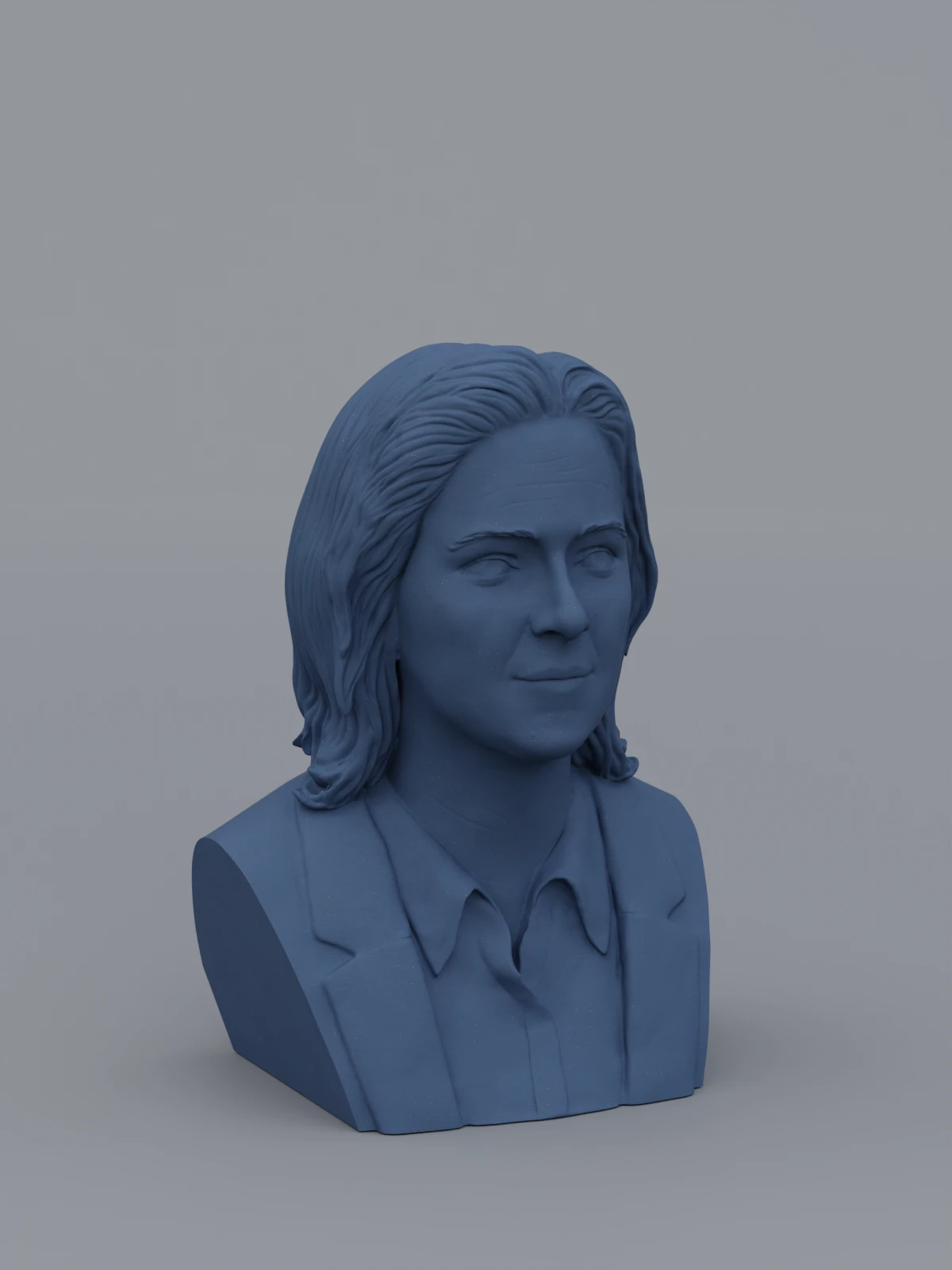 The bust is 3D-printed in a single color using environmentally friendly bio-plastic.